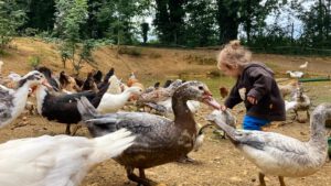 On our small farm, in addition to our dogs and cats, there are also our ducks, our chickens, our sheep, and our horses … All our guests can participate in the daily life of the farm: looking after the chickens, feeding the ducks, the sheep..