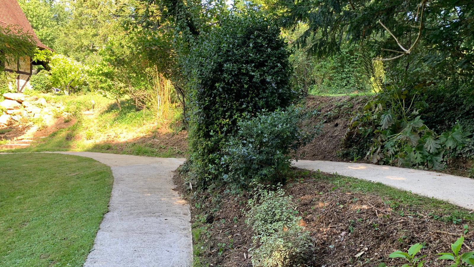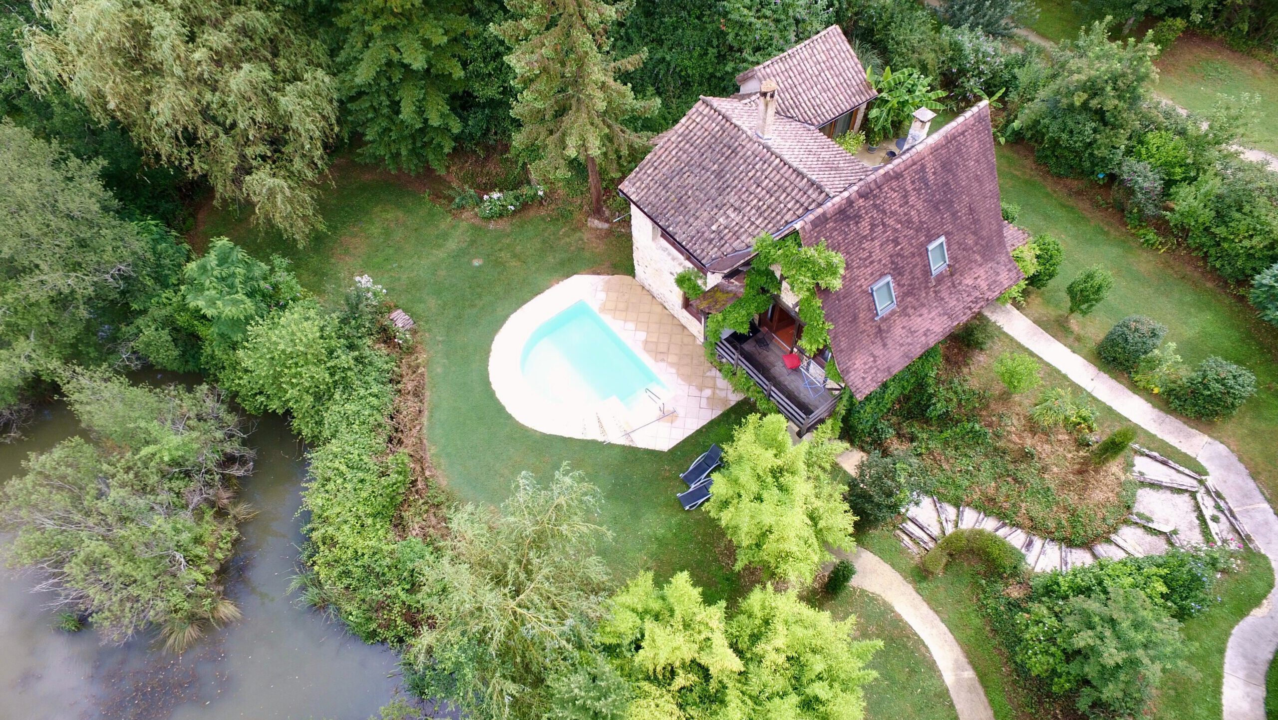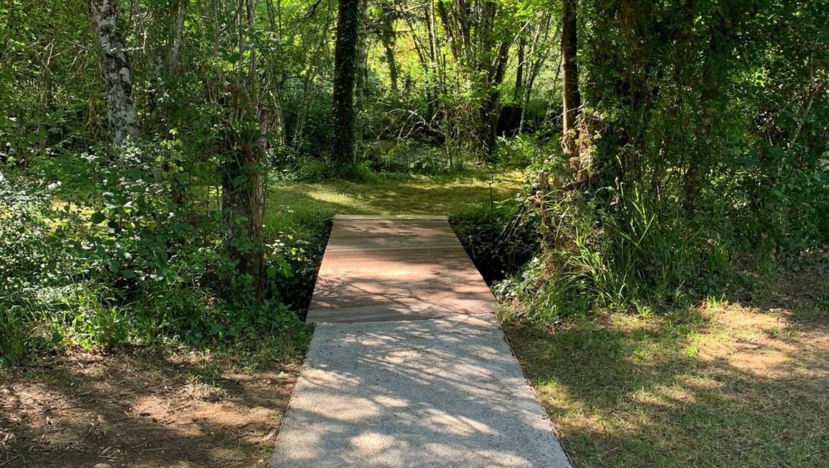 The small island of the pond, as well as the swimming pool and the sauna are easily accessible thanks to a concrete path. The sauna, the shower and the toilets are located on the same level (without steps), which allows people in wheelchairs to easily access them.
